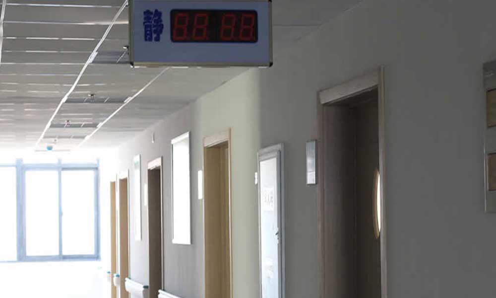 在护士站,选用了2台无线网络呼叫器服务器和手表信号接收器,显示2组三位数据,前一组为当今呼叫,后一组存储10个号翻转显示,适用视频语音报号,更形象化。而为了更好地让护理人员可以在第一时间掌握患者的状况,还此外配置了手表信号接收器,当护理人员没有服务器旁一样能立即接受到来源于病人的呼叫信息内容。