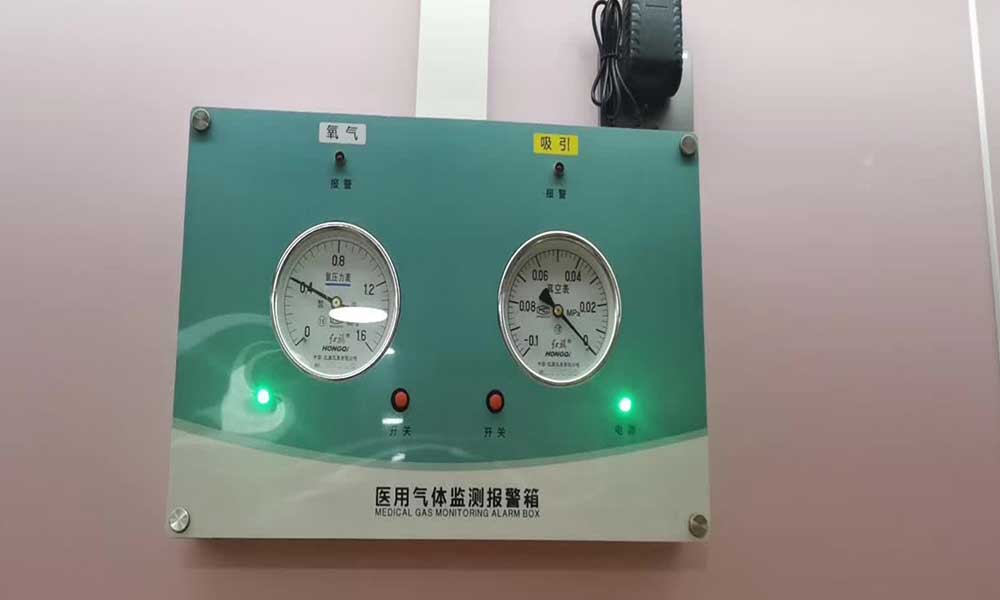 医用中心供氧系统为更好地监测各病房氧气使用压力的具体情况,确保医用气体系统安全运行,特在各病房护士站配备医疗阀门报警箱,监测病房氧气压力,确保各病房氧气压力不低于正常工作所需的压力,实现连续稳定的供气,当压力异常时发出声光报警。